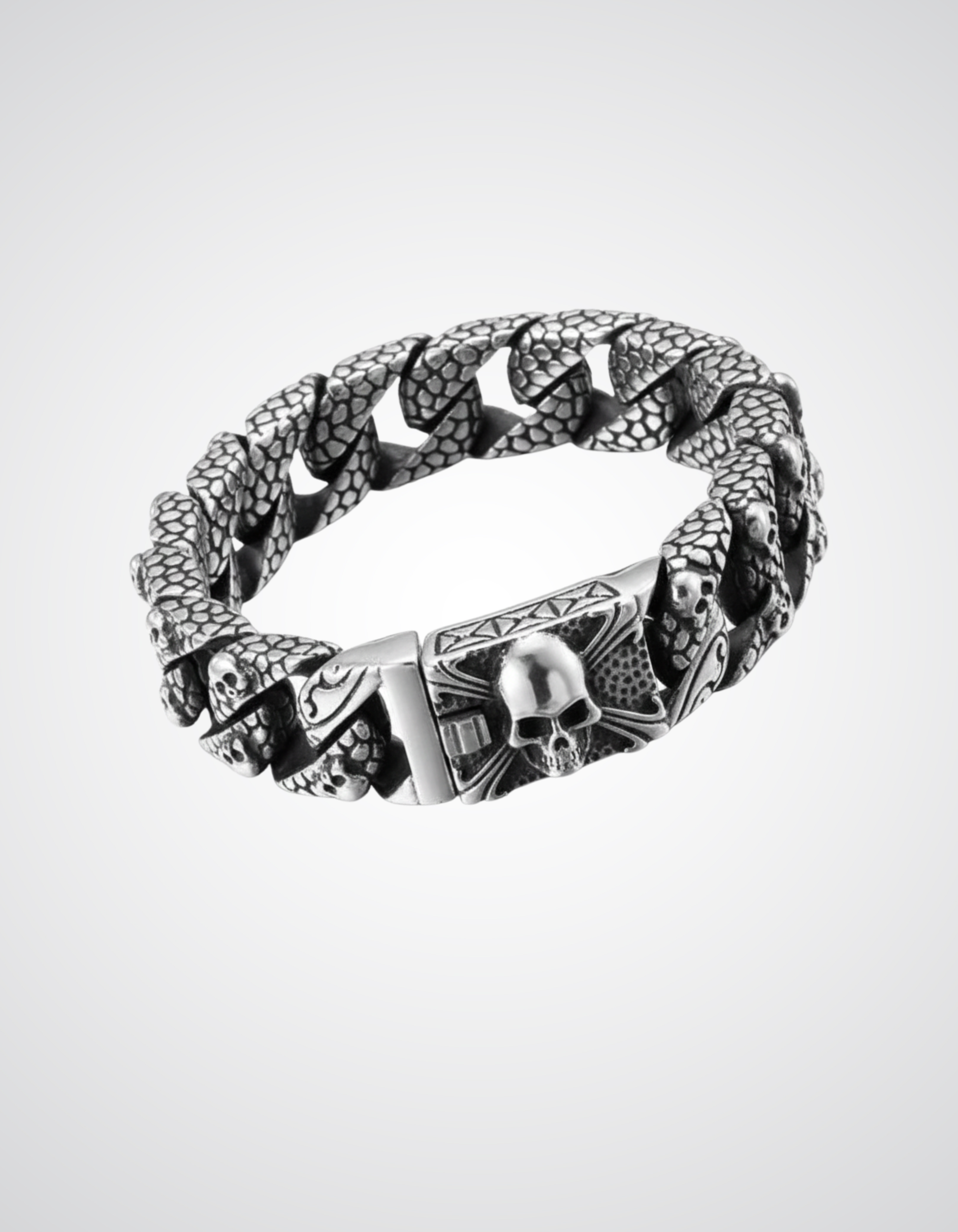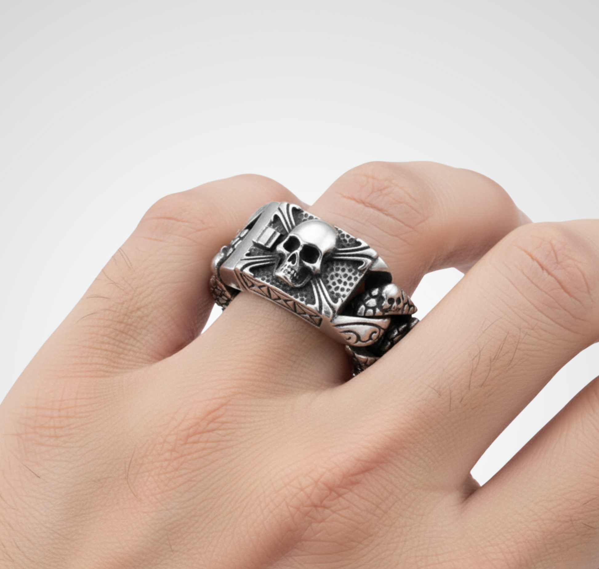 Ten pierścień to idealne dopełnienie Twojego looku na każdym festiwalu heavy metal. Doskonale komponuje się z nabijanymi ćwiekami skórzanymi kurtkami, pieszczochami oraz pasami z łańcuchami. Wyrazista czaszka przyciąga wzrok i podkreśla Twoją przynależność do świata ciężkich brzmień.