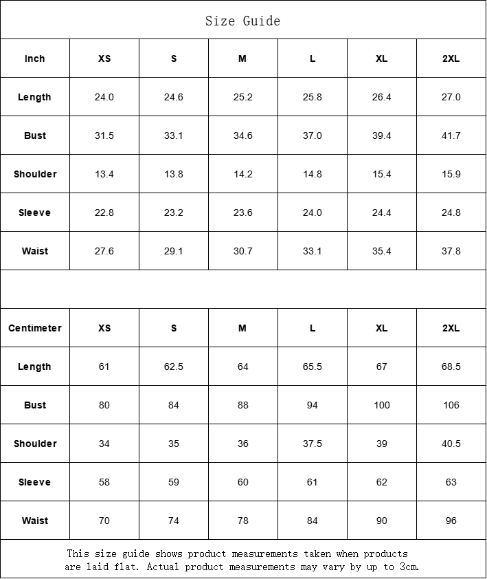 This size guide shows product measurements taken when products are laid flat. Actual product measurements may vary by up to 3cm.