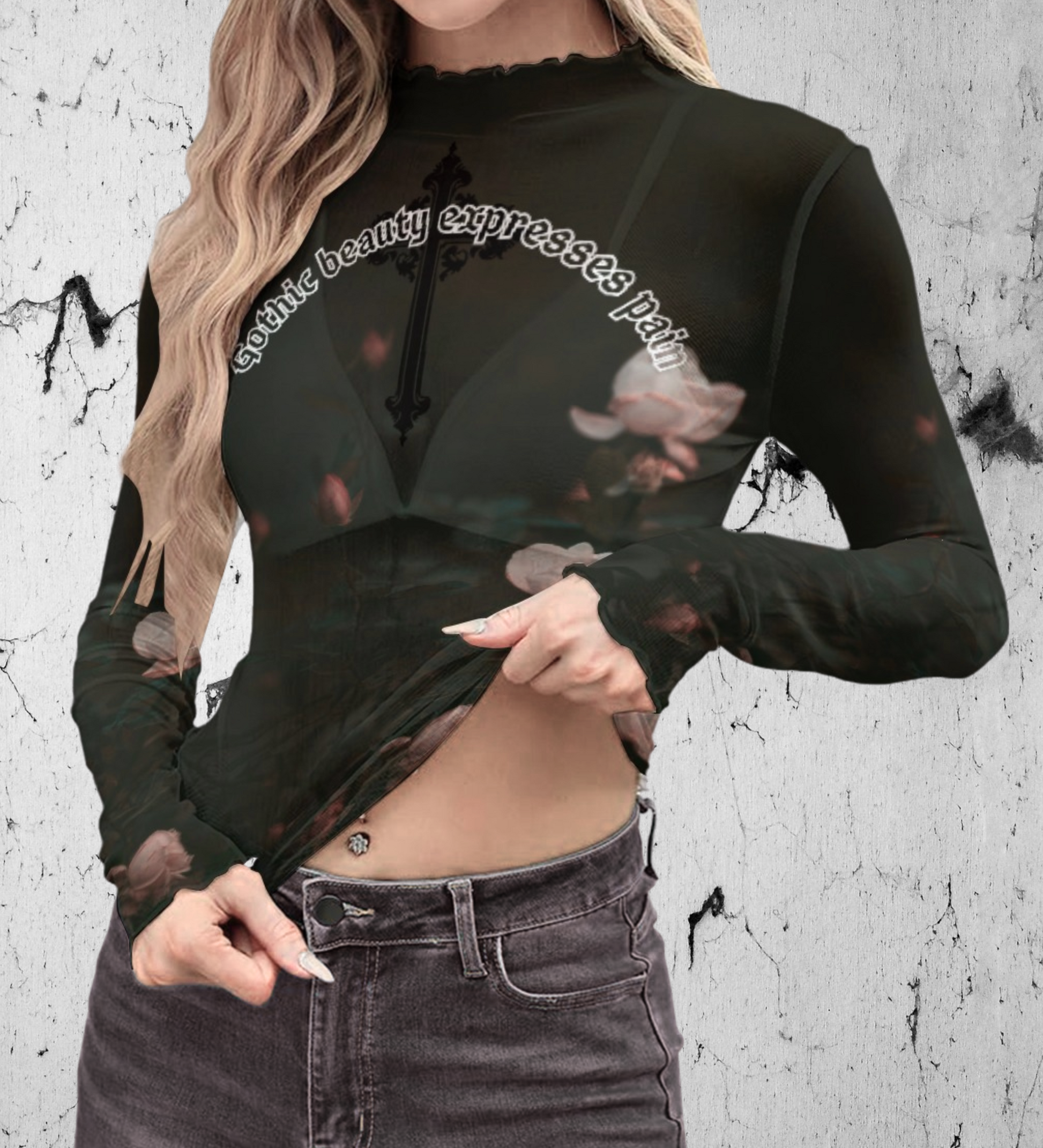 🖤 Gotycka Bluzka z Siateczki – Gothic Beauty Expresses Pain