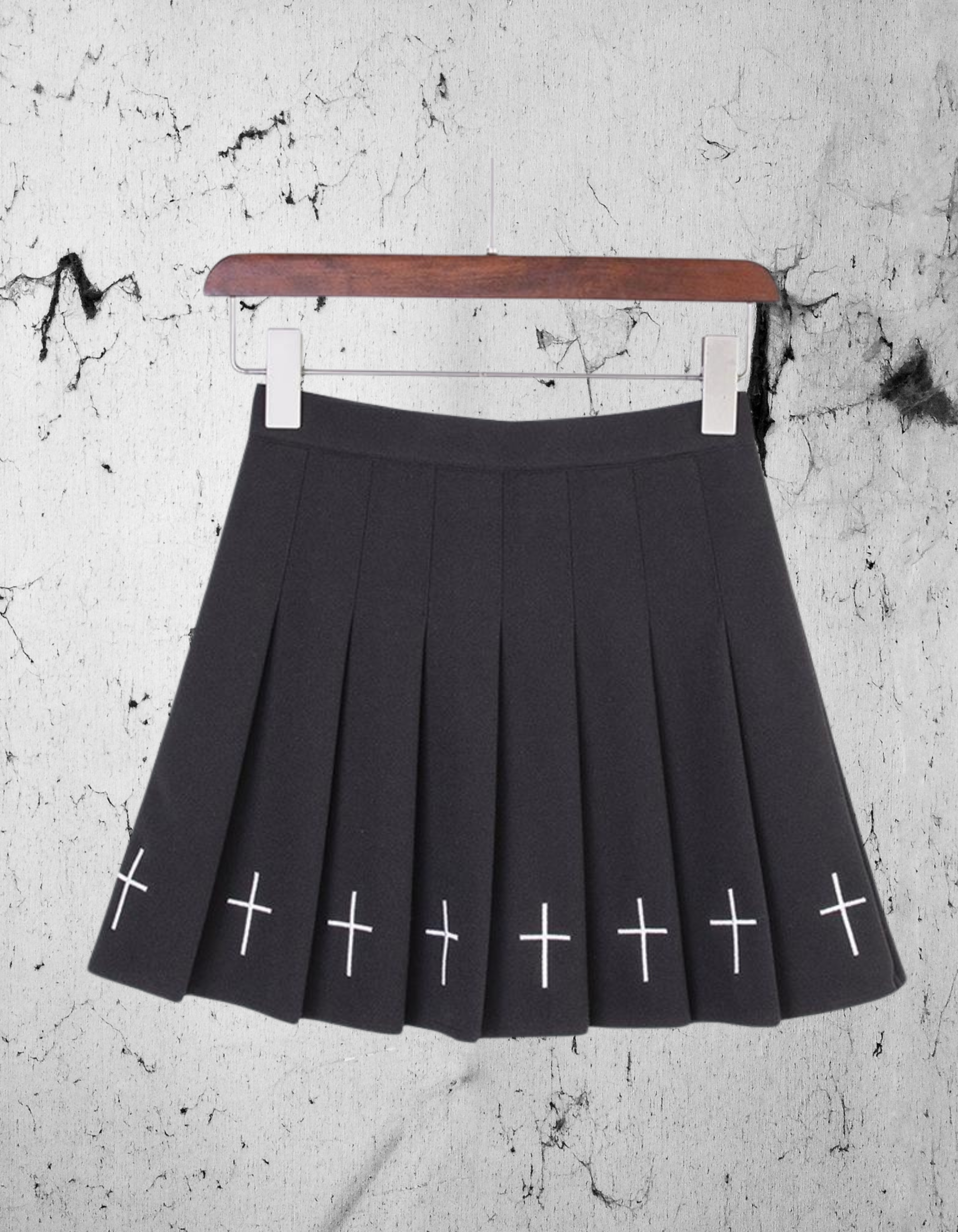 Gotycka Spódniczka z Haftowanymi Krzyżami