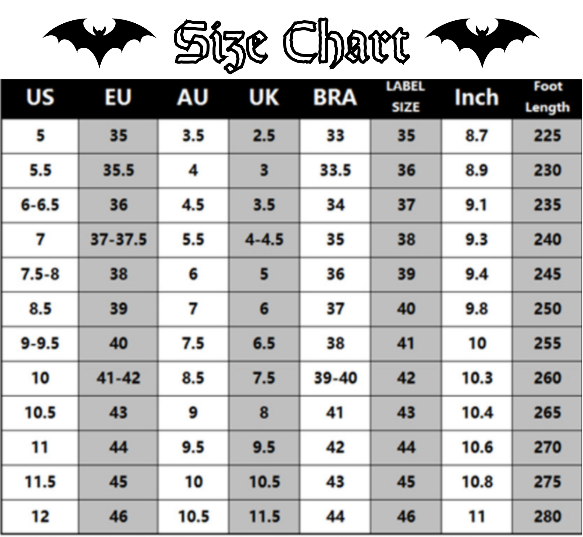 Rozmiary: 35–46 EU