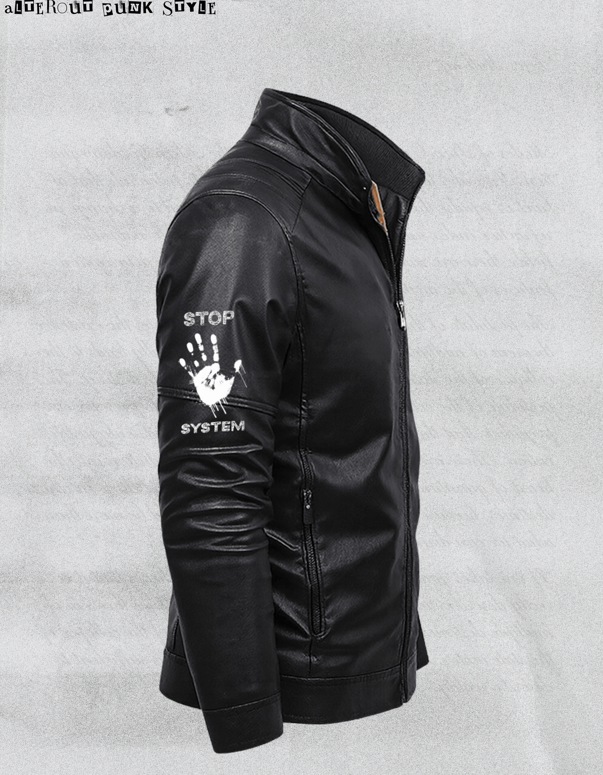 To, co od razu przykuwa uwagę, to graficzny nadruk czaszki na plecach oraz wyrazisty napis PUNK SOUL. Każdy detal jest przemyślany – od anarchistycznego symbolu na piersi, po hasła buntownicze na rękawach (Stop System), które podkreślają antysystemowy charakter kurtki.