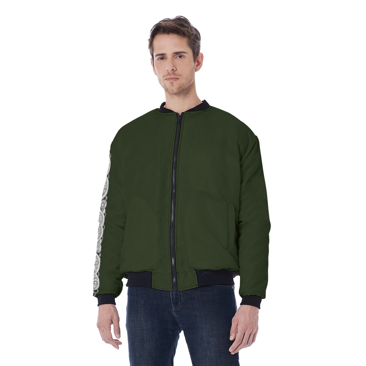 Stań się częścią legendy z kurtką Forest Wolf Guard. Ta bomberka to manifestacja stylu Slavic Gothic, łącząca militarny fason z pogańskim mrokiem. Centralnym motywem jest wizerunek leśnego wilka-strażnika, który według słowiańskich wierzeń chronił sacrum dzikiej natury. Głęboka czerń materiału zewnętrznego kontrastuje z drapieżną, pomarańczową podszewką, tworząc projekt pełen dynamiki i buntu. To idealna zbroja dla tych, którzy kroczy ścieżką mroku, łącząc tradycję przodków z nowoczesnym, ulicznym sznytem.